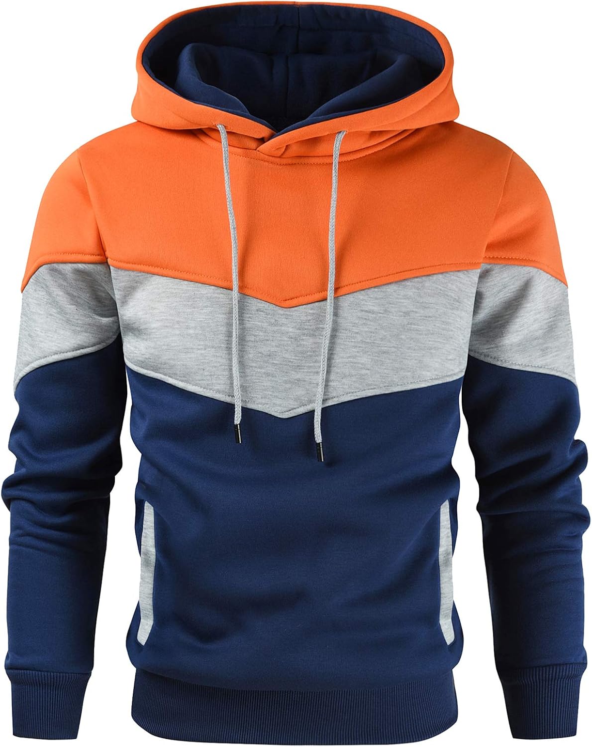Gesean Men’s Novelty Color Block Pullover Fleece Hoodie Long Sleeve Casual Sweatshirt with Pocket